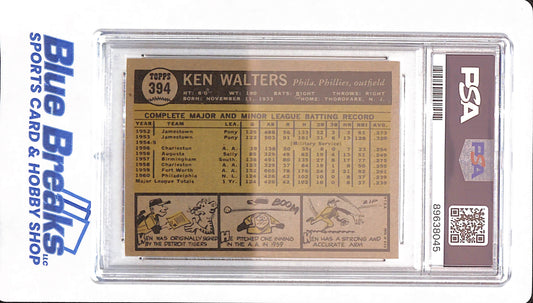 1961 Topps - Ken Walters - # 394 - PSA 7 - Philadelphia Phillies - Baseball