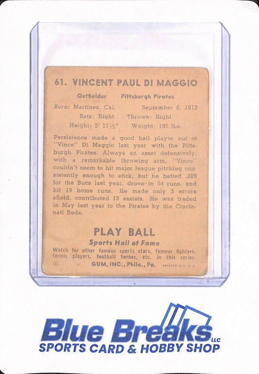 1941 - Vince Di Maggio - # 61 - Baseball - Pittsburgh Pirates