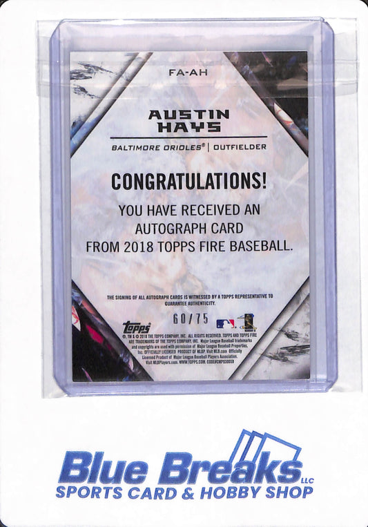 2018 Topps Fire - Austin Hays - # FA-AH - Baltimore Orioles - Baseball - Autographed - 60/75
