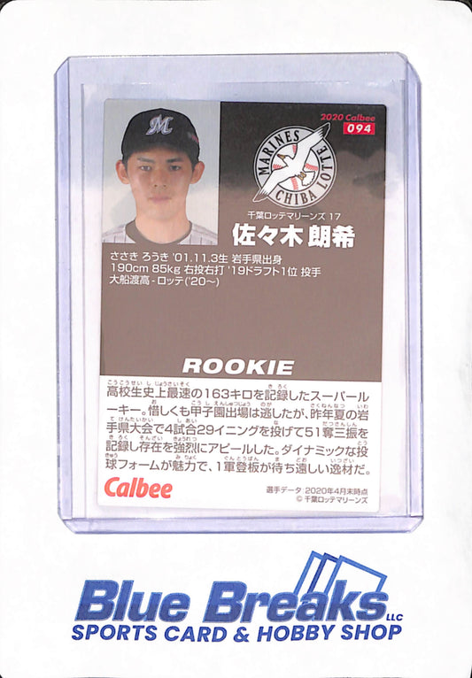 2020-094 Calbee Baseball Cards - Roki Sasaki - Chiba Lotte Marines - Japanese - Baseball - Rookie - #094