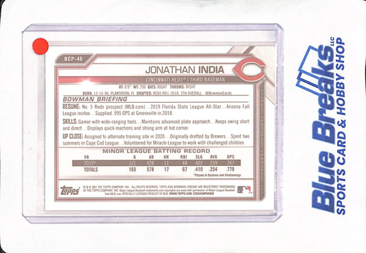 2021 Bowman Chrome Sapphire - Jonathan India - Cincinnati Reds - Baseball - Green - 122/125 - #BCP-45