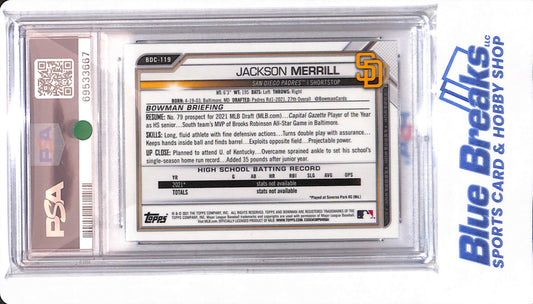 2021 Bowman Draft - Jackson Merrill - # BDC119 - PSA 9 - San Diego Padres - Baseball - Chrome