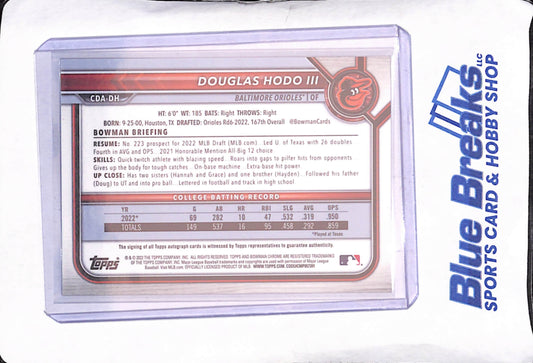2022 Bowman Chrome Draft - Douglas Hodo III - Blue Bowman 1st Autograph - 49/150 - Baltimore Orioles - Baseball - #CDA-DH