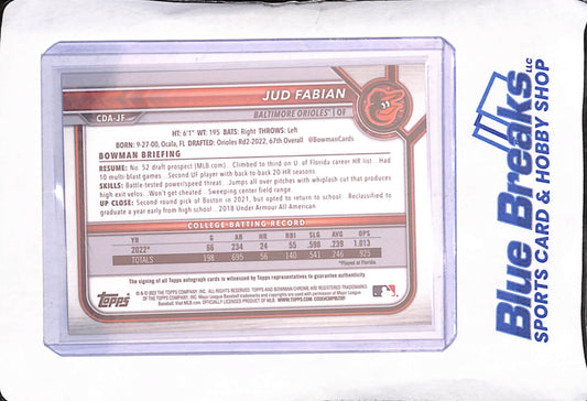 2022 Bowman Chrome Draft - Jud Fabian - 1st Bowman Autograph - Baltimore Orioles - Baseball - #CDA-JF