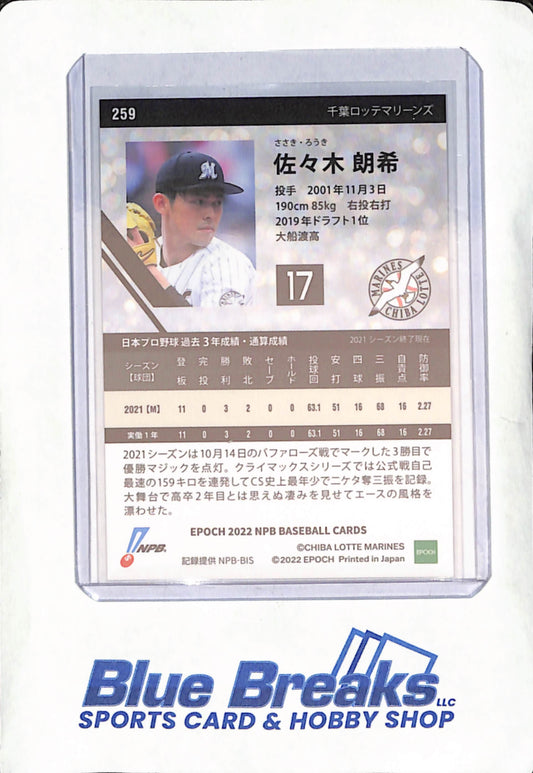 2022 Epoch NPB Baseball Cards - Roki Sasaki - Chiba Lotte Marines - Japanese - Baseball - #259