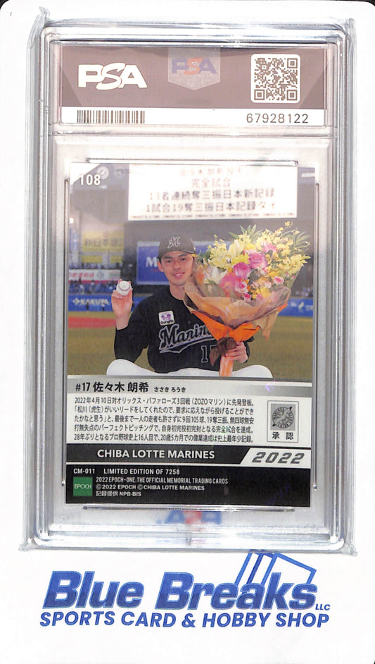 2022 Epoch One - Roki Sasaki - #108 - Baseball - Chiba Lotte Marines - PSA 10 - Limited Edition of 7258