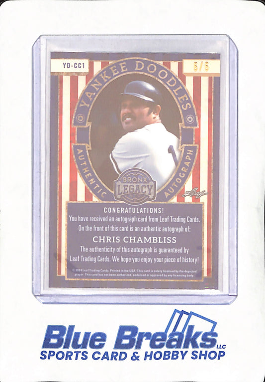 2024 Leaf Bronx Legacy Yankee Doodles - Chris Chambliss - Autograph - New York Yankees - Baseball - 6/6 - #YD-CC1
