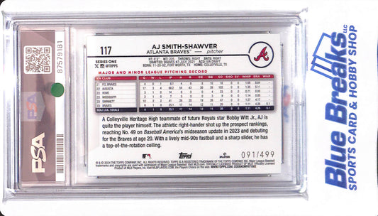 2024 Topps - AJ Smith-Shawver - # 117 - PSA 10 - Atlanta Braves - Baseball - Green Crackle Foil - 091/499