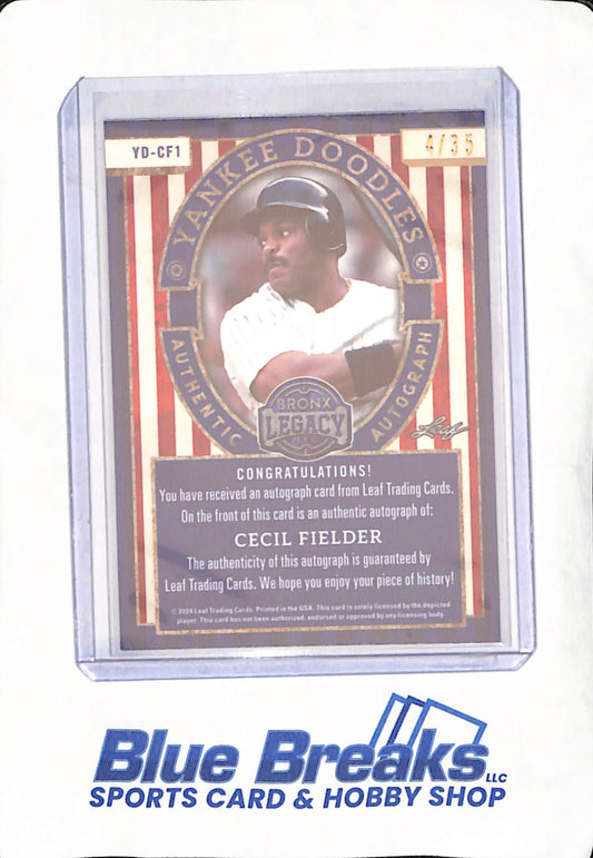 2024 Leaf Bronx Legacy Yankee Doodles - Cecil Fielder - Autograph - New York Yankees - Baseball - 4/35 - #YD-CF1