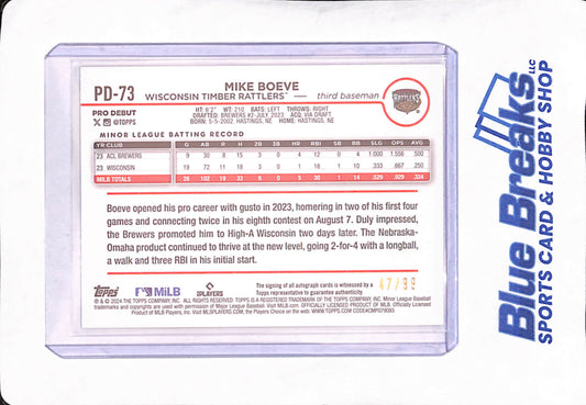 2024 Topps Pro Debut - Mike Boeve - Autograph - Green - Wisconsin Timber Rattlers - Baseball - 47/99 - #PD-73