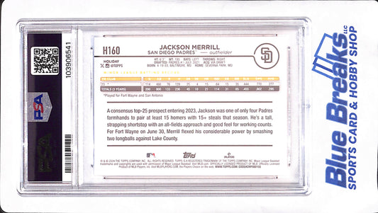 2024 Topps Holiday - Jackson Merrill - Variation - RC - PSA Mint 9 - San Diego Padres - Baseball - #H160