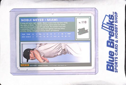 2025 Panini Donruss - Noble Meyer - Gold Die-cut Rated Prospect - 21/25 - Miami Marlins - Baseball - #110