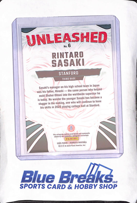 2025 Panini Donruss - Rintaro Sasaki - Unleashed - 19/199 - Stanford - Baseball - #6