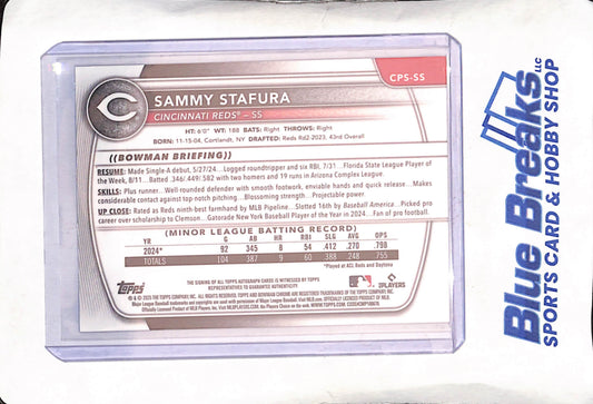 2025 Bowman Chrome Sapphire - Sammy Stafura - Autograph - 57/199 - Cincinnati Reds - Baseball - #CPS-SS