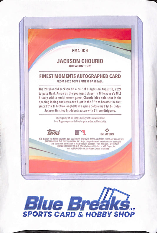 2025 Topps Finest - Jackson Chourio - Moments Autograph - 8/8/2024 - Milwaukee Brewers - Baseball - #FMA-JCH