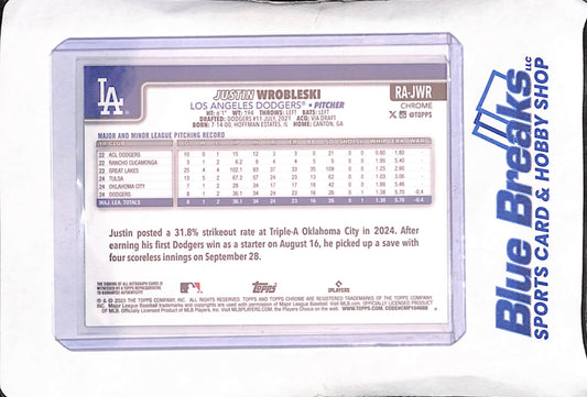 2025 Topps Chrome - Justin Wrobleski - Green Autograph RC- 97/99 - Los Angeles Dodgers - Baseball - #RA-JWR