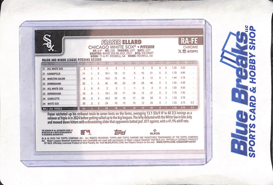 2025 Topps Chrome - Fraser Ellard - Autograph - 10/10 - RC - Chicago White Sox - Baseball - #RA-FE