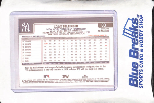 2025 Topps Chrome - Cody Bellinger - Orange MLB Logo Refractor - 21/25 - New York Yankees - Baseball - #83