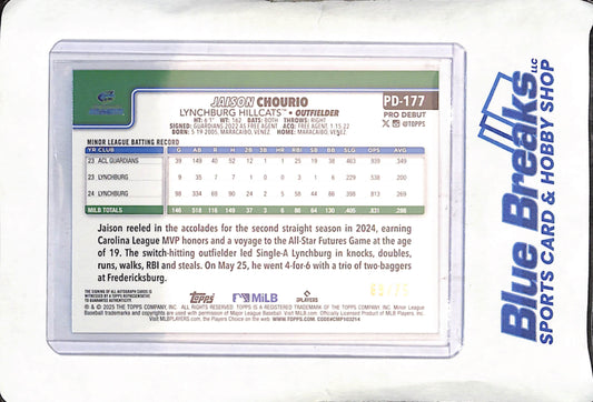 2025 Topps Pro Debut - Jaison Chourio - Green Foil Autograph - 69/75 - Lynchburg Hillcats - Baseball - #PD-177