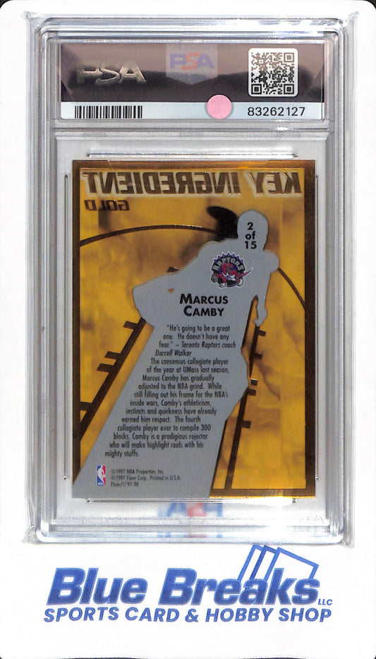 1997 Fleer Key Ingredients - Marcus Camby - #2 - PSA 8 - Toronto Raptors - Basketball - Gold