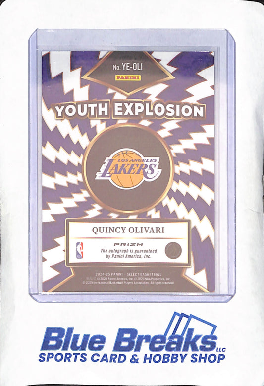 2024-25 Panini Select - Quincy Olivari - Youth Explosion RC Autograph - Los Angeles Lakers - Basketball - #YE-OLI