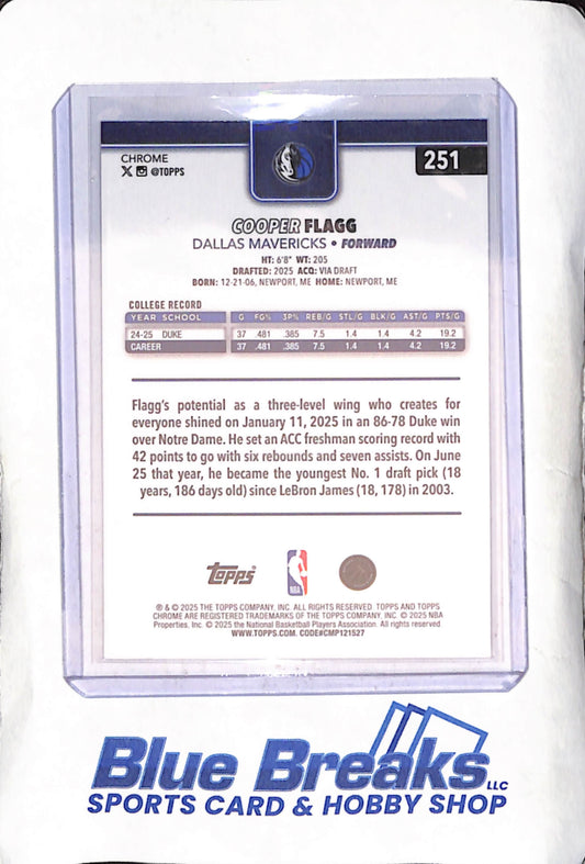 2025 Topps Chrome - Cooper Flagg - RC - Dallas Mavericks - Basketball - #251