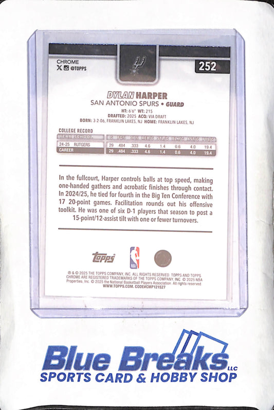 2025 Topps Chrome - Dylan Harper - Raywave - RC - San Antonio Spurs - Basketball - #252