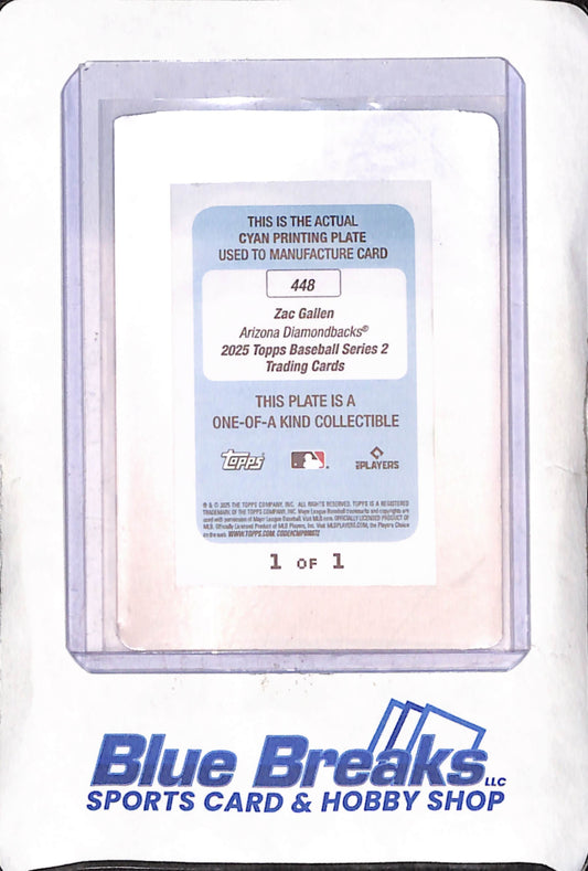 2025 Topps Series 2 - Zac Gallen - Cyan Printing Plate - 1/1 - Arizona Diamondbacks - Baseball - #448