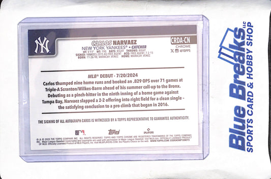 2025 Topps Chrome Update - Carlos Narvaez - RC - Autograph - New York Yankees - Baseball - #CRDA-CN