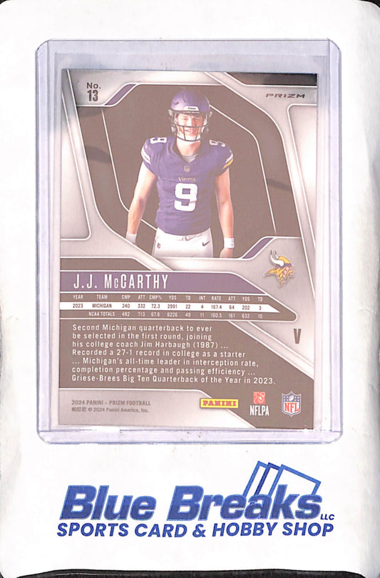 2024 Panini Prizm - JJ McCarthy - Image Variation - Silver - RC - Minnesota Vikings - Football - #13