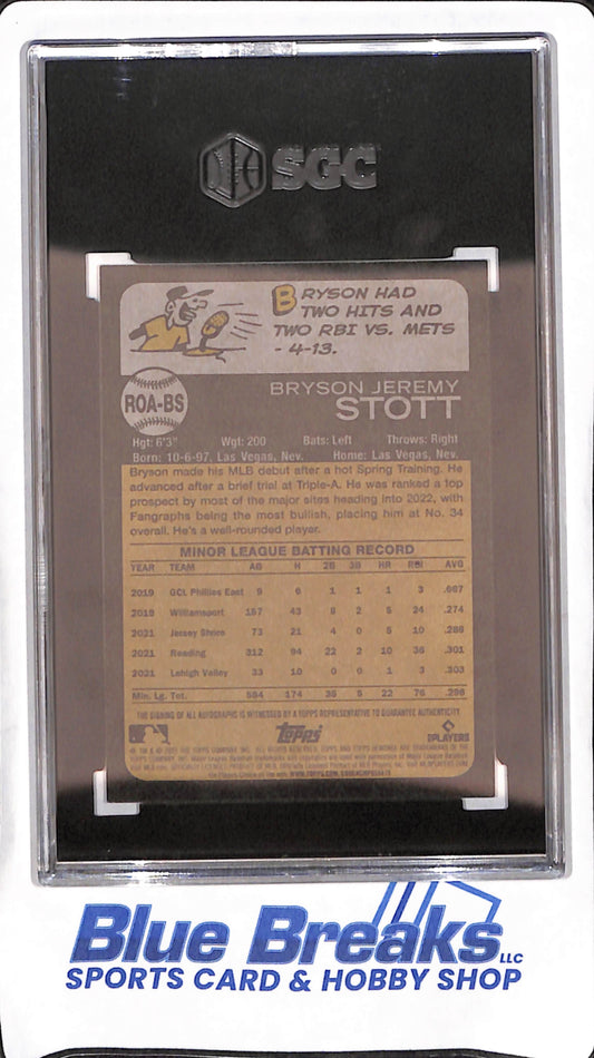 2022 Topps Heritage - Bryson Stott - Autograph RC - Philadelphia Phillies - Baseball - SGC 10/10 - #ROA-BS