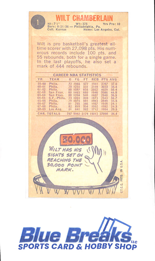 Wilt Chamberlain - 1969 Topps - Los Angeles - Basketball - # 1