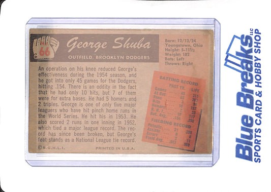 1955 George Shuba - Baseball - Brooklyn Dodgers - # 66Vendor:Blue Breaks Sarasota LLCRegular price $10.00 USDRegular priceUnit price / per-