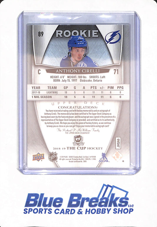 2018-19 Upper Deck The Cup - Anthony Cirelli - Ice Hockey - Tampa Bay Lightning - # 89 - Rookie - Autographed - Relic - # 138/249