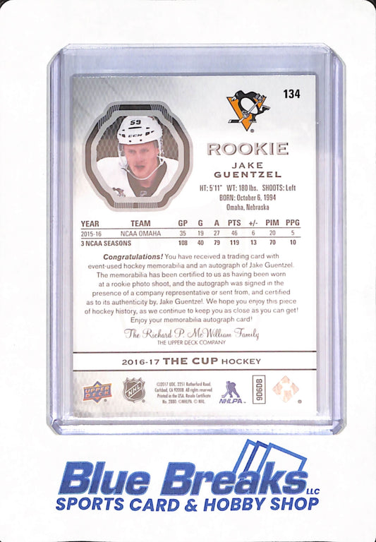2016-17 Upper Deck - The Cup - Jake Guentzel - Ice Hockey - Pittsburgh Penguins - # 134 - Rookie - 177/249 - Relic - Autographed
