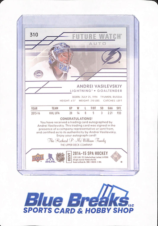 2014-15 Upper Deck SPA - Andrei Vasilevskiy - Future Watch - Ice Hockey - Tampa Bay Lightning - # 310 - Autographed - 444/999