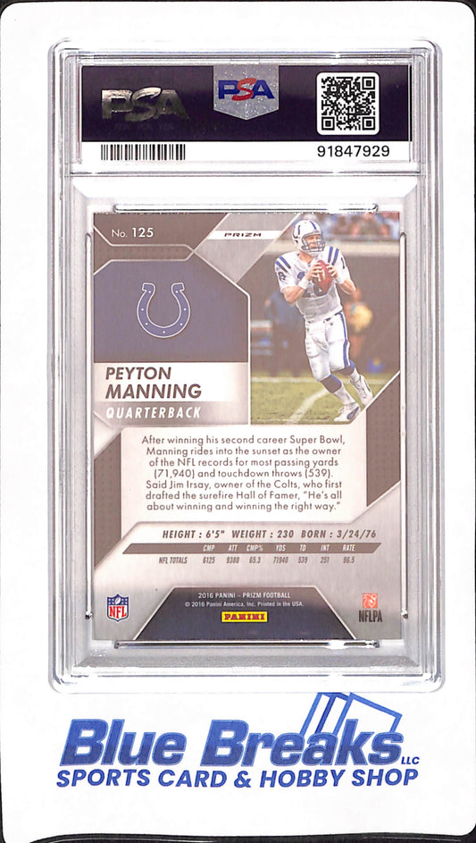2016 Panini Prizm - Peyton Manning - Football - Indianapolis Colts - Red / White / Blue - # 125 - Disco Prizm - PSA 10