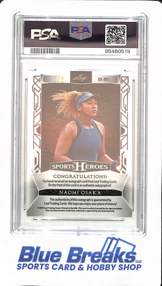 2024 Leaf Sports Heroes - Naomi Osaka - Tennis - Black Shimmer - Autographed - 3/5 - # BANO1 - PSA 8