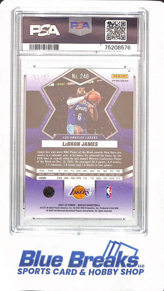 2021 Mosaic - LeBron James - Basketball - Los Angeles Lakers - Blue Fast Break - 54/85 - # 246 - PSA 10