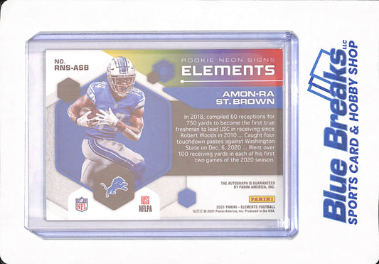 Amon Ra St. Brown - 2021 Panini Elements - RNS-ASB - Football - Rookie - Neon Signs - 24/125 - Autographed - Detroit Lions