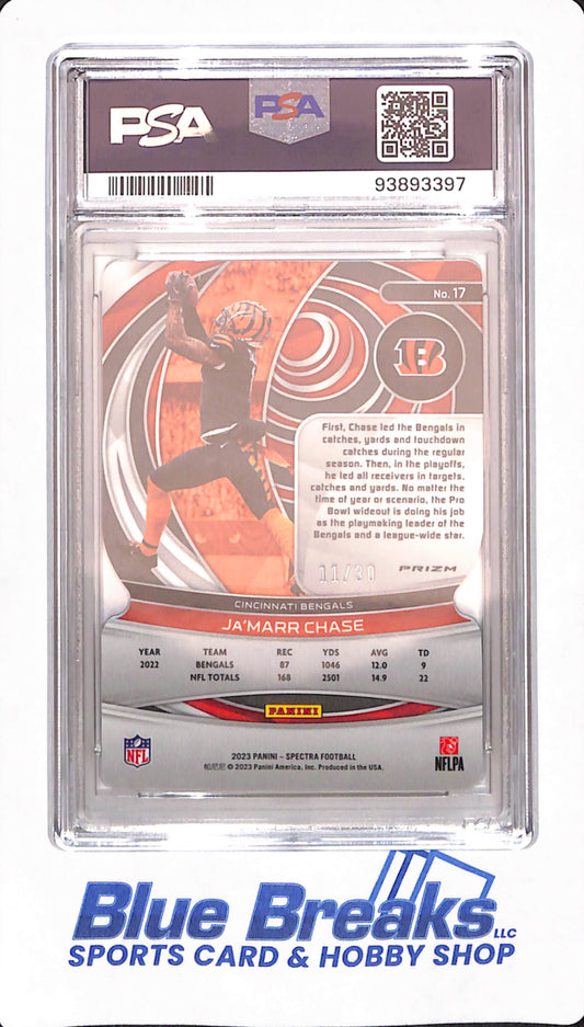 2023 Spectra - Ja'Marr Chase - Cincinnati Bengals - Football - # 17 - Neon Green Die - Cut - 11/30 - PSA 10