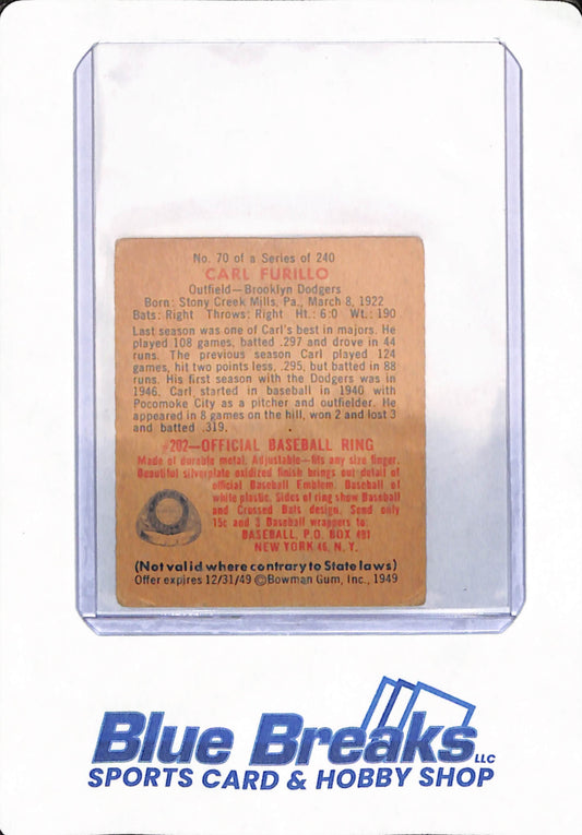 1949 Bowman - Carl Furillo - # 70 - Baseball - Brooklyn Dodgers