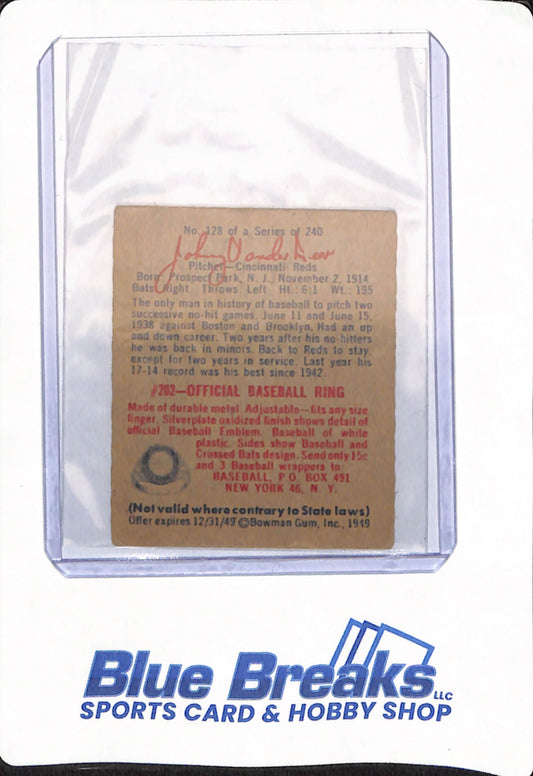 1949 Bowman - Johnny Vander Meer - Baseball - # 128 - Cincinnati Reds