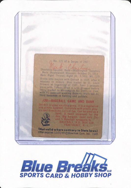 1949 Bowman - Mark Christman - # 121 - Baseball - Washington Senators