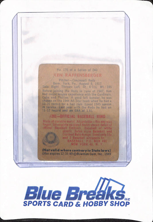 1949 Bowman - Ken Raffensberger - # 176 - Baseball - Cincinnati Reds