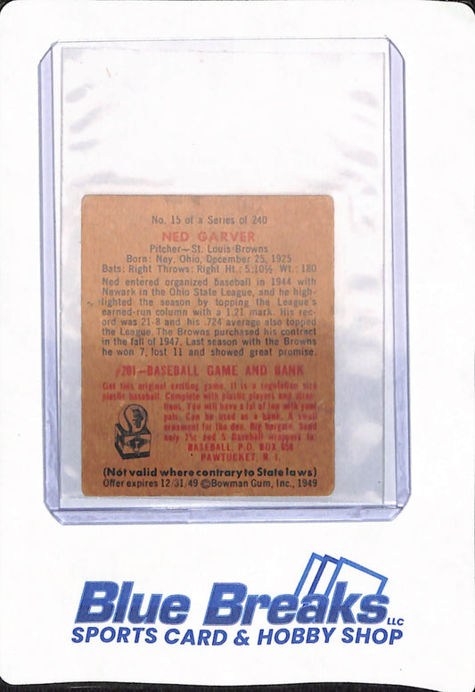 1949 Bowman - Ned Garver - # 15 - Baseball - St Louis Browns