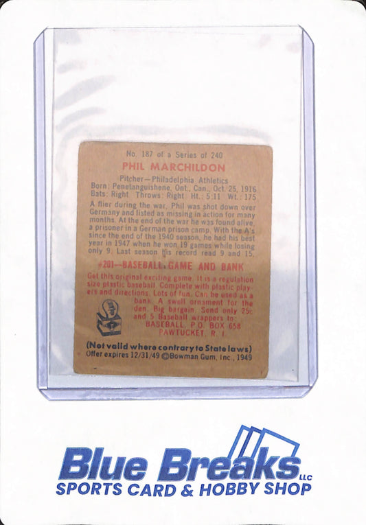1949 Bowman - Phil Marchildon - # 187 - Baseball - Philadelphia Athletics