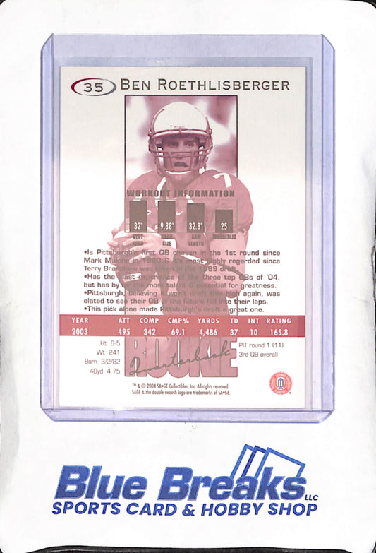 2004 Sage - Rookie Quarterback - Ben Roethlisberger - 1 of 3200 - #35 - football - Steelers