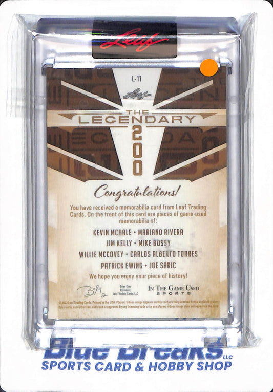 2022 Leaf in the Game Used Sports - The Legendary 200 - Kevin McHale, Mariano Rivera, Jim Kelly, Mike Bossy, Willie McCovey, Carlos Torres, Patrick Ewing, Joe Sakic - Baseball - Basketball - Football - Hockey - Soccer - Relic - 39/45