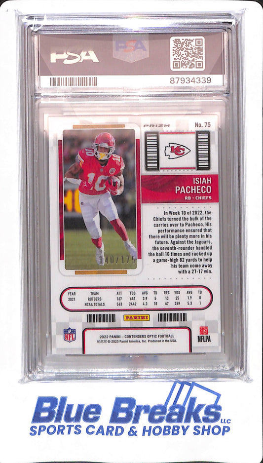 2022 Contenders Optic - Isiah Pacheco - # 75 - PSA 9 - Football - Kansas City Chiefs - Red - 140 / 175